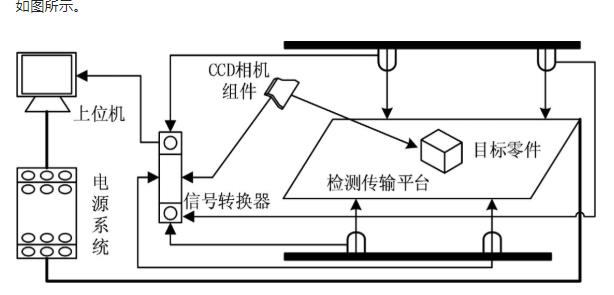 機器視覺是一種利用計算機來分析圖像的一種方法,采用的是將CCD相機拍攝到的目標圖像實時轉(zhuǎn)換成圖像信號,然后將圖像信號輸入進嵌入式視覺圖像處理系統(tǒng)。根據(jù)圖像飽和度、像素分布、目標圖像邊沿、亮度等信息轉(zhuǎn)換成計算機識別的數(shù)字信號,利用先進的算法對圖像進行特征識別,將特征識別出來的結(jié)果進行評價,輸出最終的缺陷結(jié)果,包括尺寸、角度、個數(shù)、合格與不合格、有無等,實現(xiàn)自動識別功能。機器視覺檢測系統(tǒng)包括CCD 相機組件、傳輸帶、視覺光源、工業(yè)采集卡、工業(yè)計算機等,如圖所示。