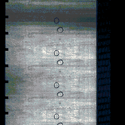圈起來標(biāo)注點(diǎn)為缺陷,從下圖很明顯查看出缺陷情況。Pkg機(jī)器視覺檢測(cè)設(shè)備_CCD視覺檢測(cè)_外觀缺陷檢測(cè)系統(tǒng)_精質(zhì)視覺