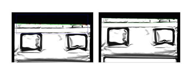 1、需抓取電池封邊的上邊緣與電池上邊緣,通過測量兩者之間的間距,來判斷封邊是否有偏移(如圖4所示);