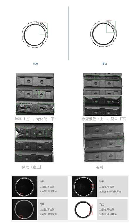 1.側(cè)面:裂口、扒缺、缺料、老化膠、毛刺、分型模臟等;pUH機器視覺檢測設(shè)備_CCD視覺檢測_外觀缺陷檢測系統(tǒng)_精質(zhì)視覺