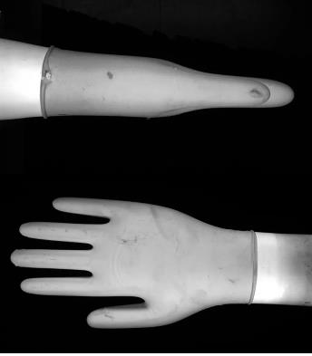 可使用兩根條光源對(duì)打,提高手套背景與瑕疵的對(duì)比度。7Fy機(jī)器視覺(jué)檢測(cè)設(shè)備_CCD視覺(jué)檢測(cè)_外觀缺陷檢測(cè)系統(tǒng)_精質(zhì)視覺(jué)